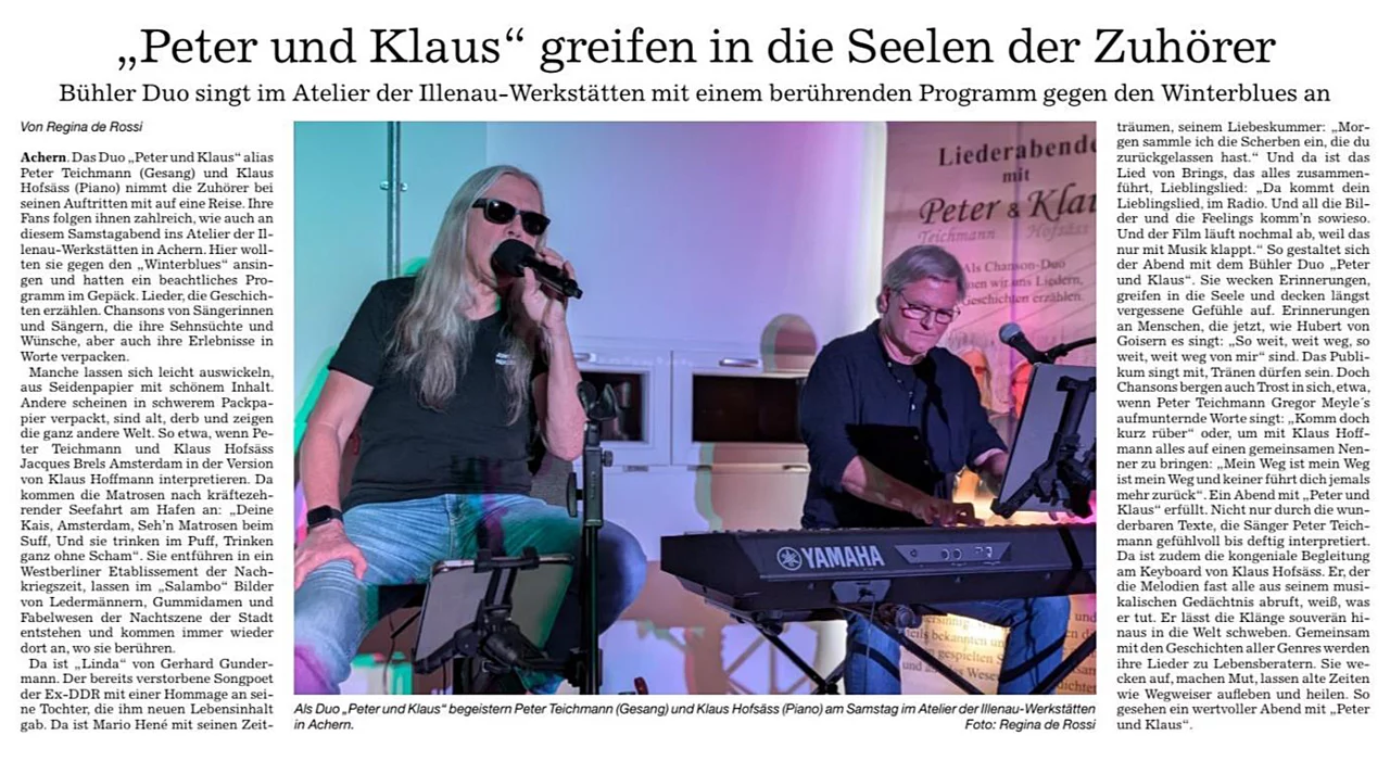 Ganz aktuell: Presseartikel zum Konzert in der Illenau in Achern vom 10.01.2026 :-)